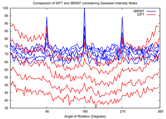ORB는 Gaussian image noise가 있을때 SIFT보다 성능이 좋다.